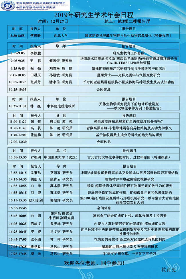 【12.27】2019年研究生学术年会日程