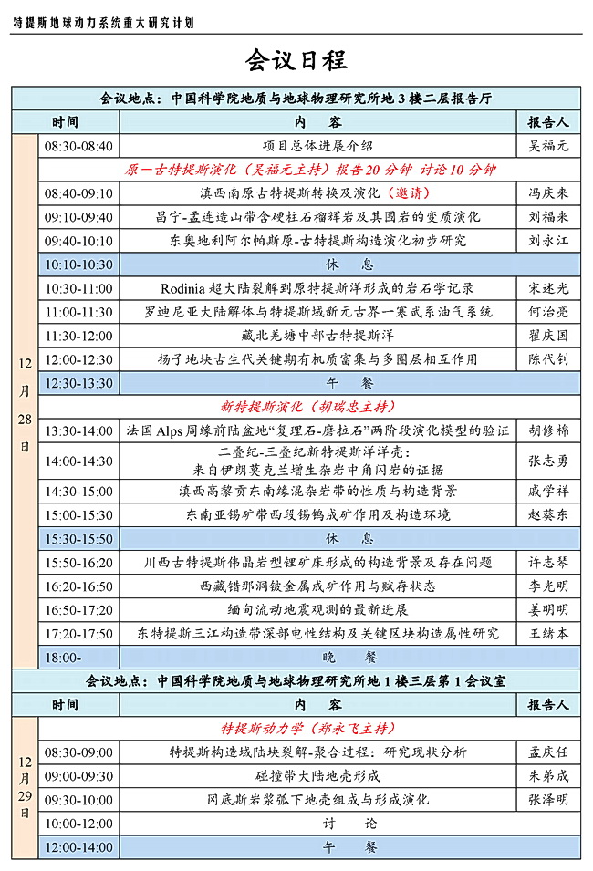 【12.28--12.29】特提斯地球动力系统重大研究计划2019年学术交流会