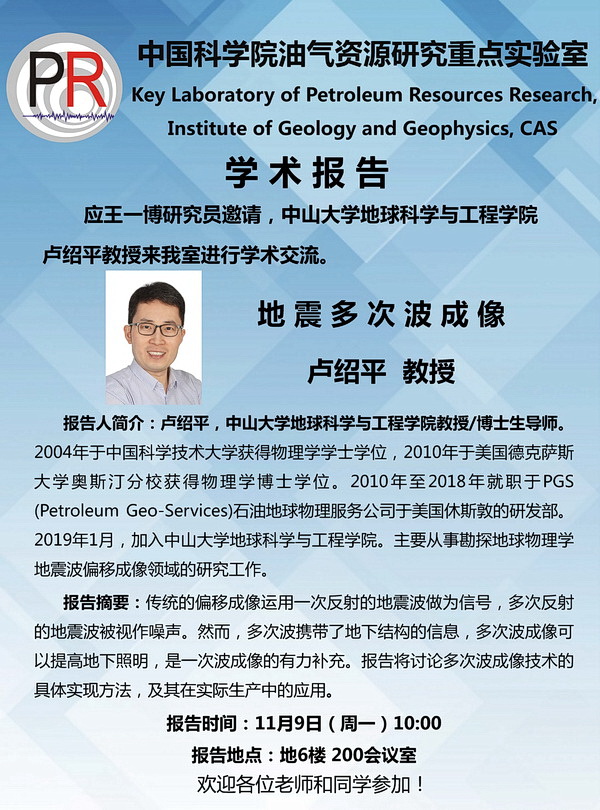 【11.9】油气室学术报告:卢绍平 教授