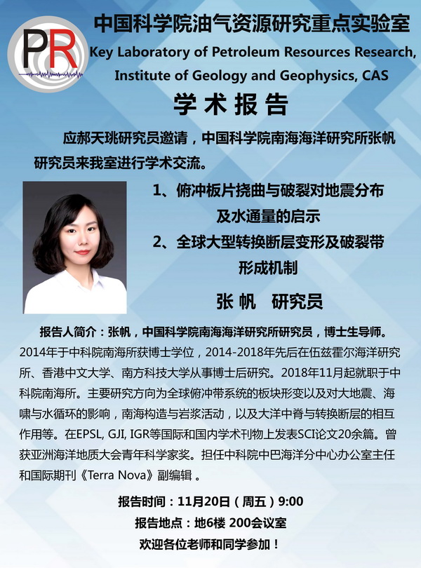 【11.20】油气室学术报告:张帆 研究员