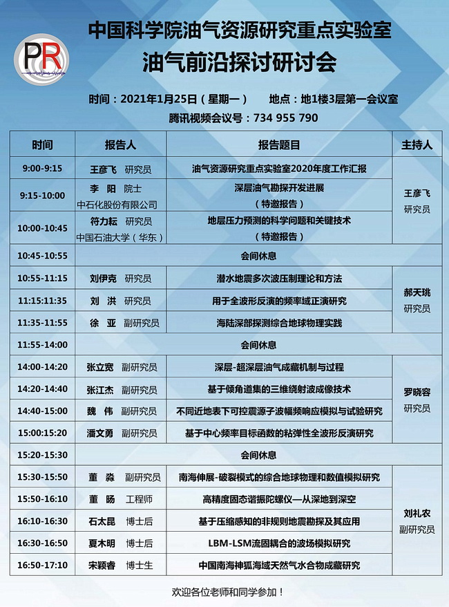 【1.25】油气室:油气前沿探讨研讨会