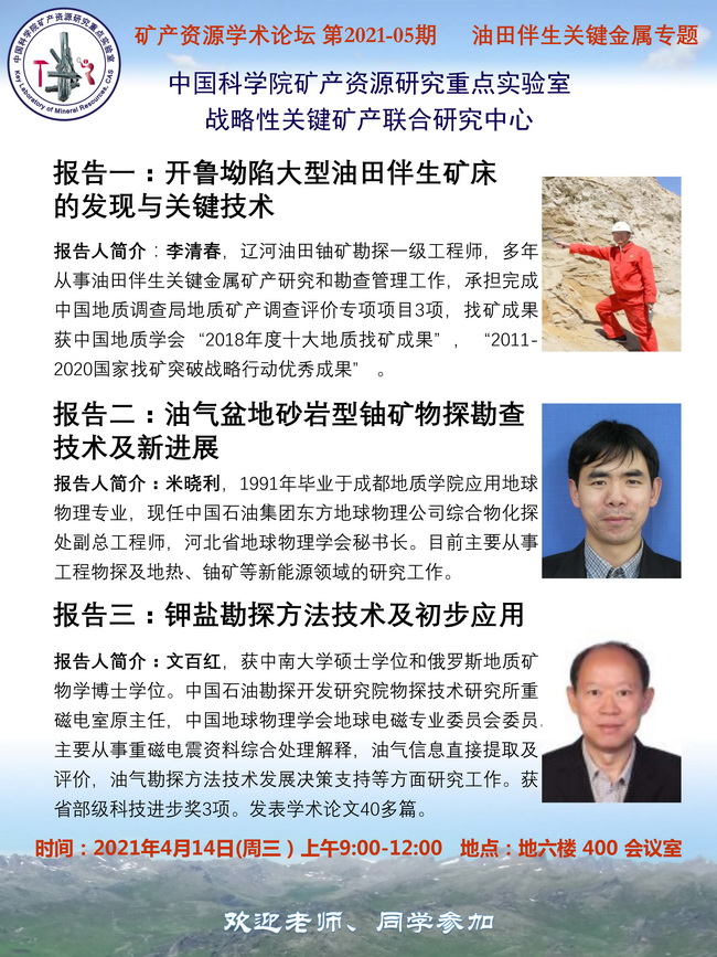 【4.14】矿产资源学术论坛:李清春 米晓利 文百红
