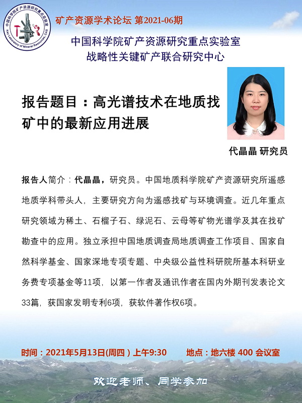 【5.13】矿产资源学术论坛:代晶晶 研究员