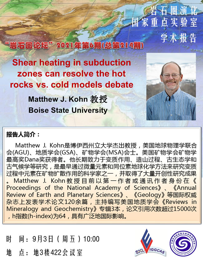 【9.3】岩石圈论坛:Matthew J. Kohn教授