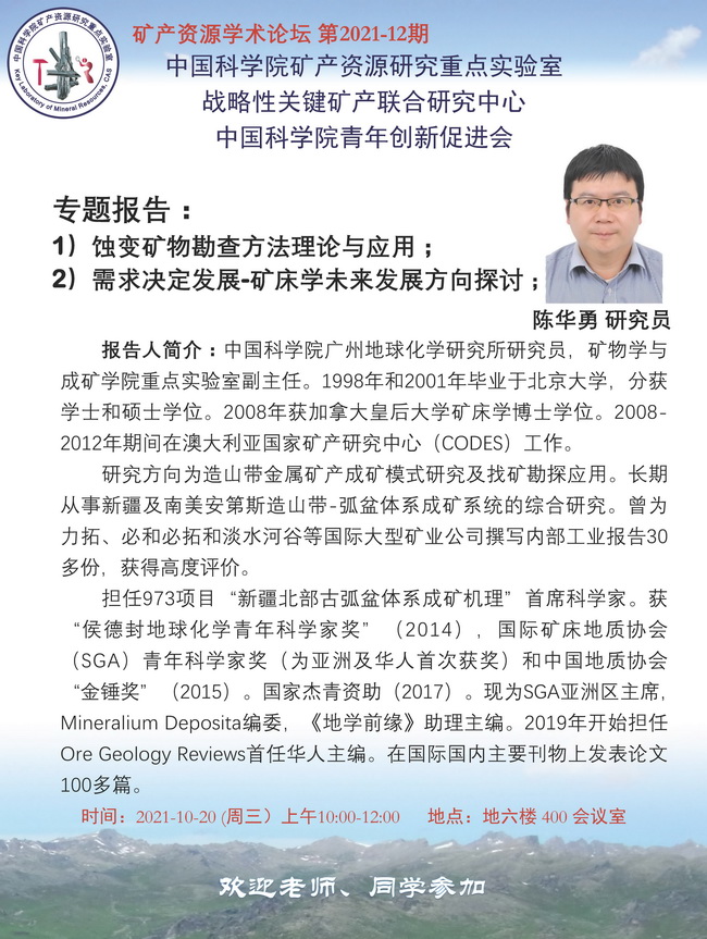 【10.20】矿产资源学术论坛:陈华勇 研究员