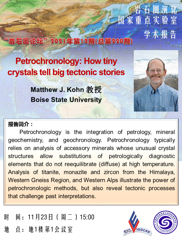 【11.23】岩石圈论坛:Matthew J. Kohn 教授