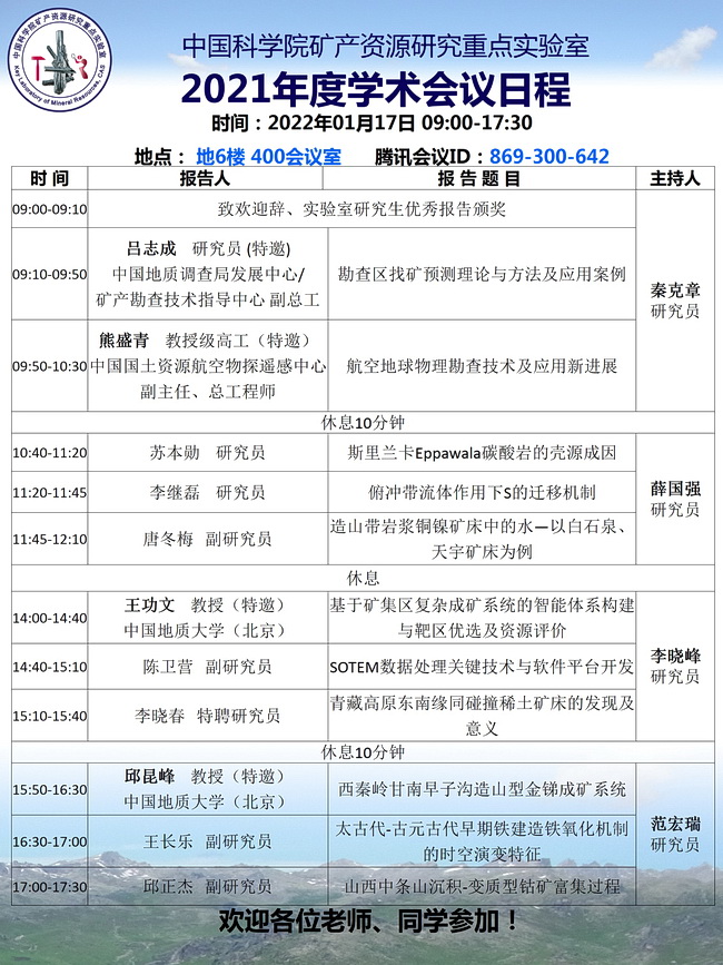 【1.17】矿产室2021年度学术会议日程