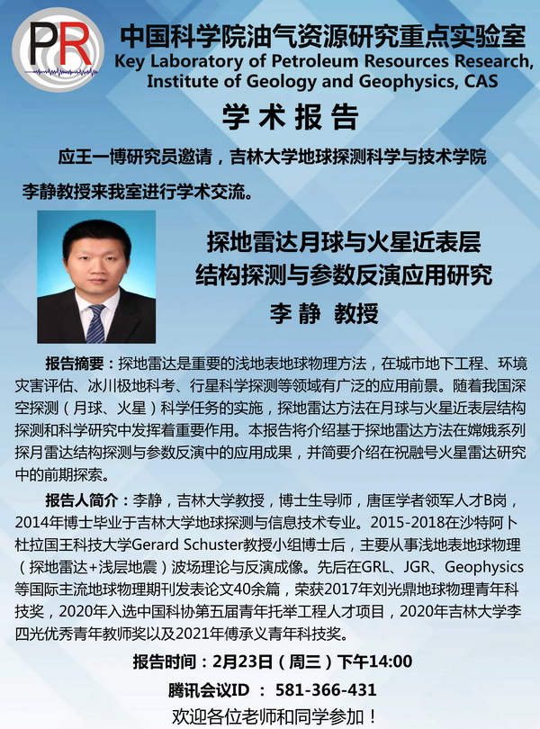 【2.23】油气室学术报告:李静 教授