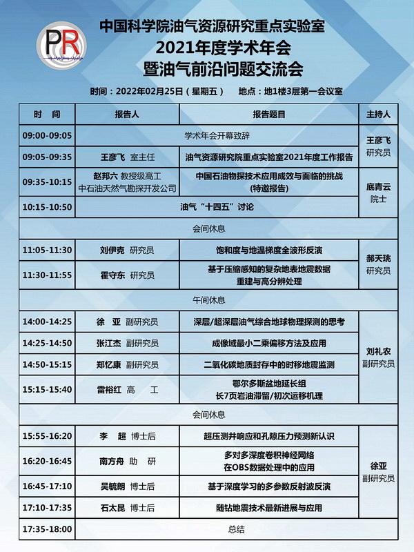 【2.25】油气室2021学术年会暨油气前沿问题交流会会议日程