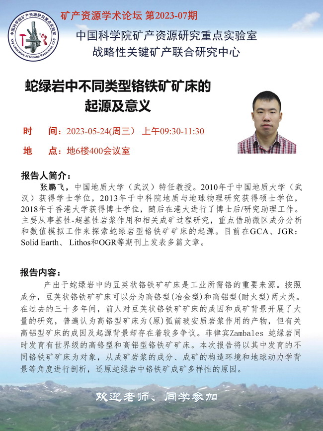 【5.24】矿产资源学术论坛·第7期:张鹏飞 博士