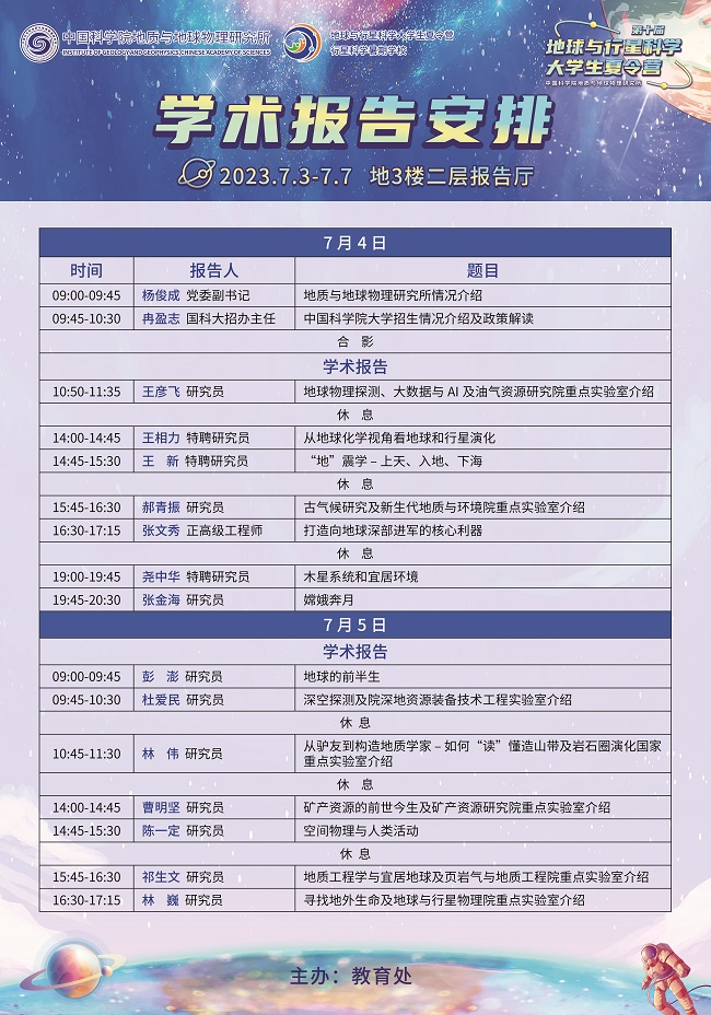 【7.3-7.7】第十届地球与行星科学大学生夏令营