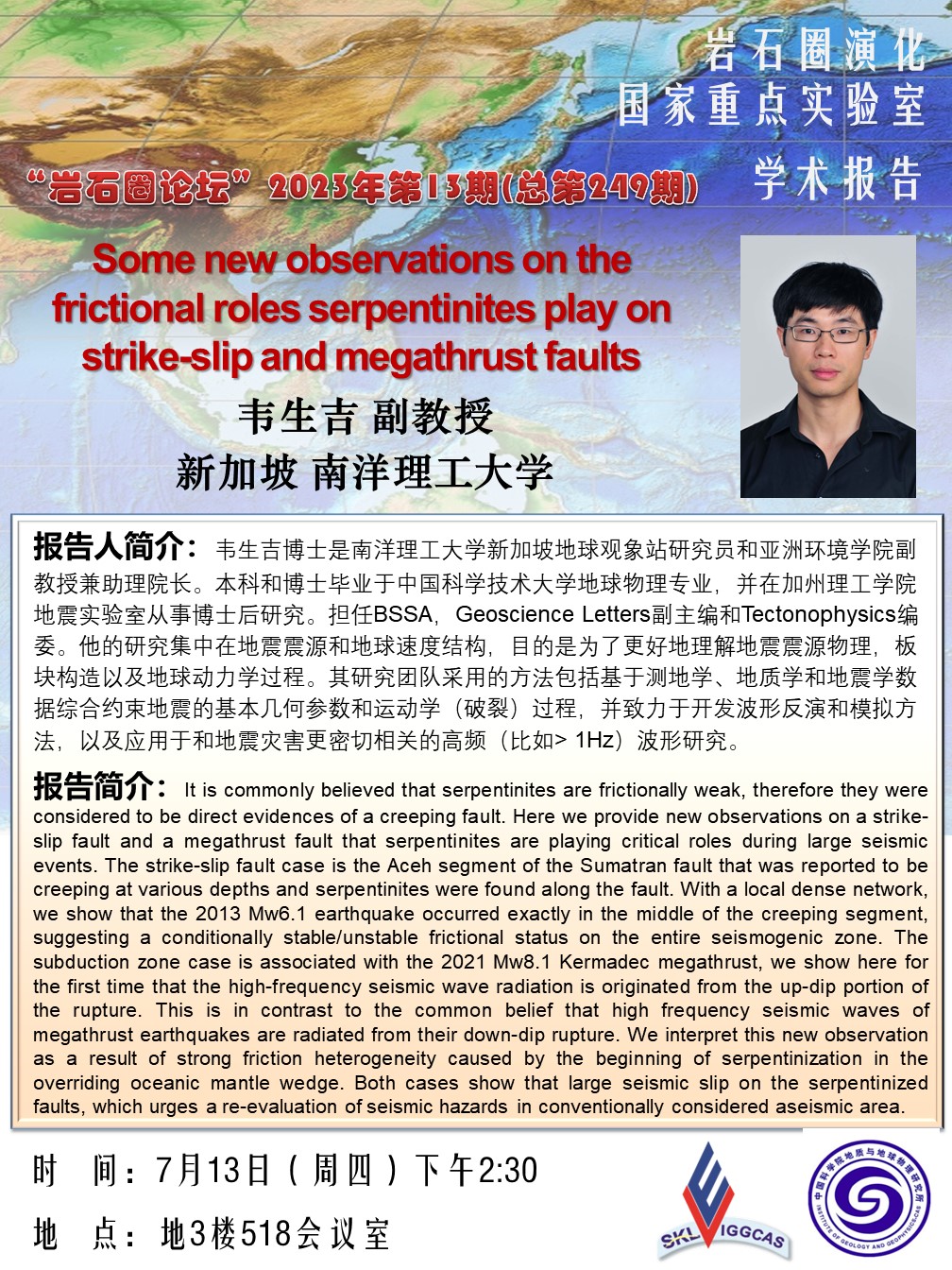 【7.13】岩石圈论坛:韦生吉 副教授