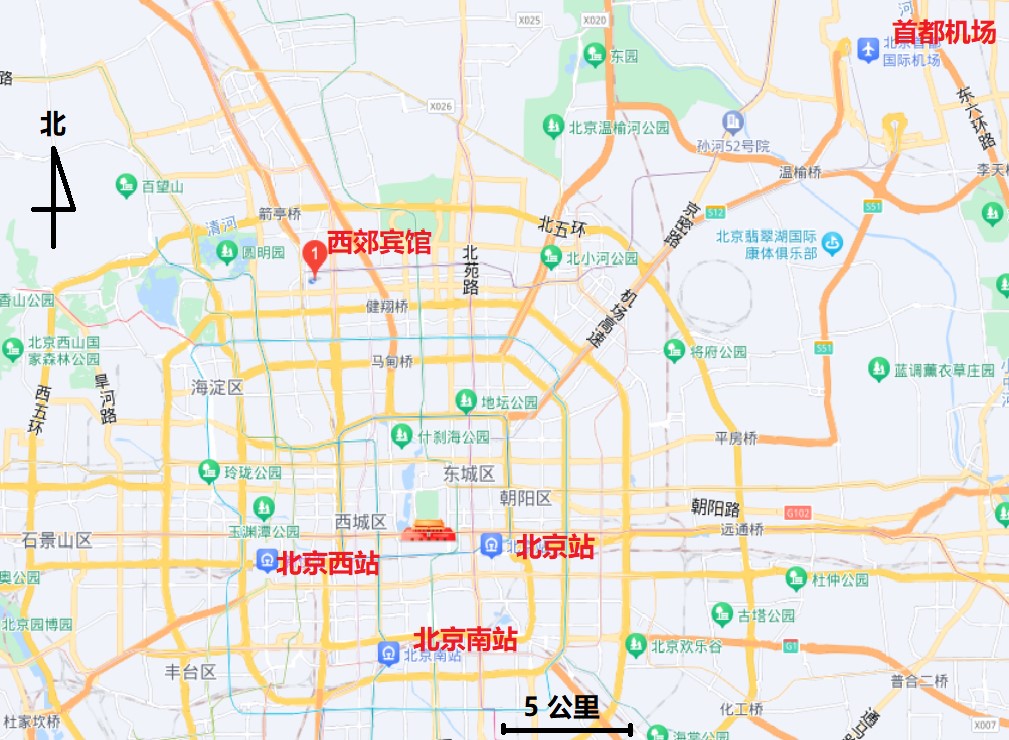 室内会议地点为北京西郊宾馆。地址是北京市海淀区王庄路18号,紧邻轻轨13号线和15号线,交通出行便利。