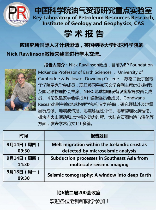 【9.14、9.18】油气室系列学术报告:Nick Rawlinson 教授