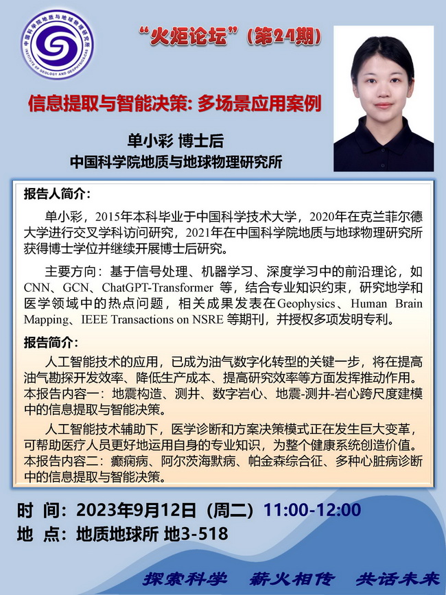 【9.11】火炬论坛·第24期:单小彩 博士后