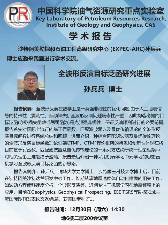 【12.30】油气室学术报告:孙兵兵 博士