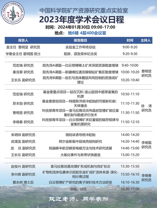 【1.30】矿产室2023年度学术会议日程