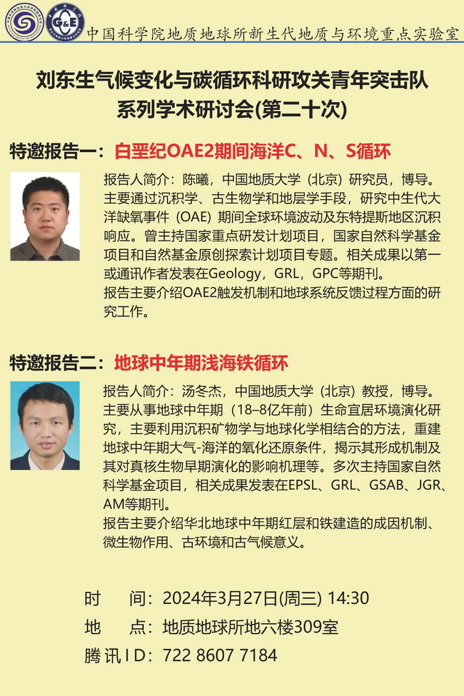 【3.27】刘东生气候变化与碳循环科研攻关青年突击队系列学术研讨会(第二十次)