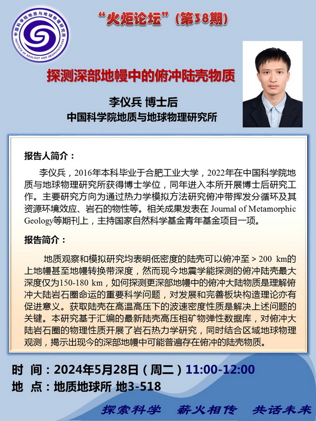 【5.28】“火炬论坛”·第38期:李仪兵 博士后