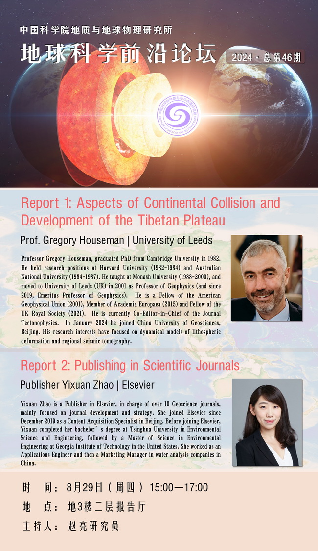 【8.29】地球科学前沿论坛:Prof. Gregory Houseman;Publisher Yixuan Zhao