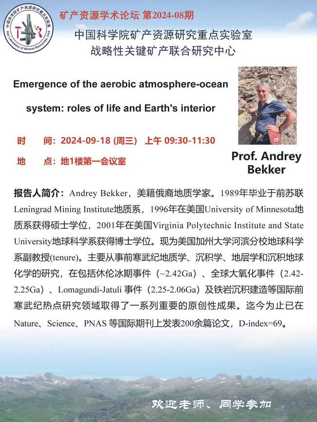 【9.18】矿产资源学术论坛:Prof. Andrey Bekker