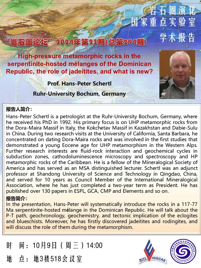 【10.9】岩石圈论坛:Hans-Peter Schertl教授