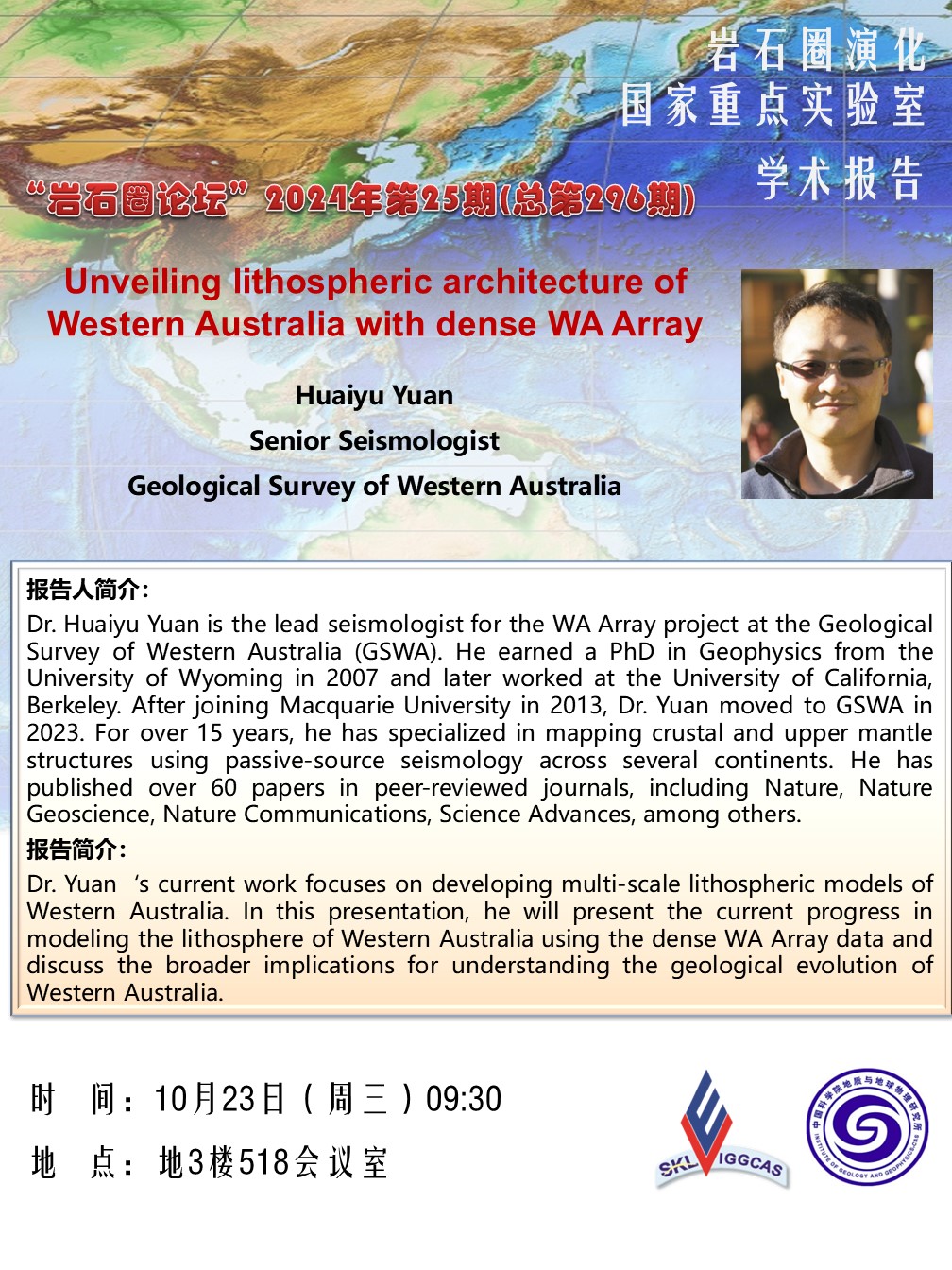 【10.23】岩石圈论坛:Dr. Huaiyu Yuan