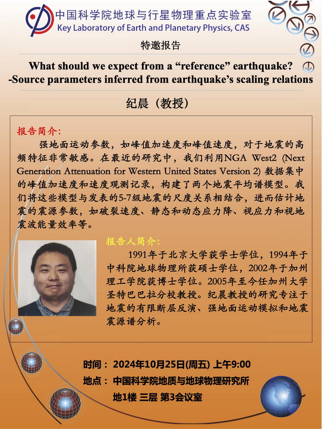 【10.25】地星室特邀报告:纪晨 教授