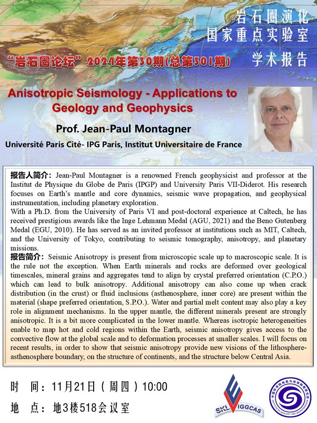 【11.21】岩石圈论坛:Prof. Jean-Paul Montagner