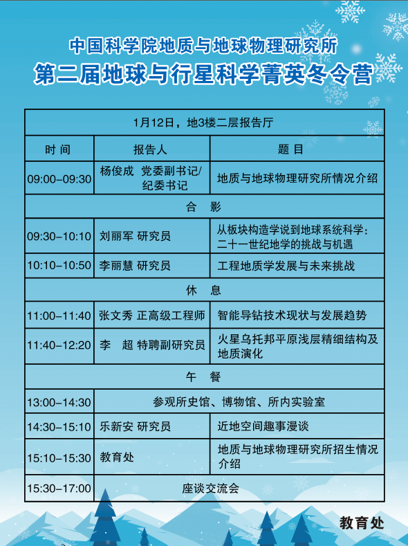 【1.12】第二届地球与行星科学菁英冬令营日程