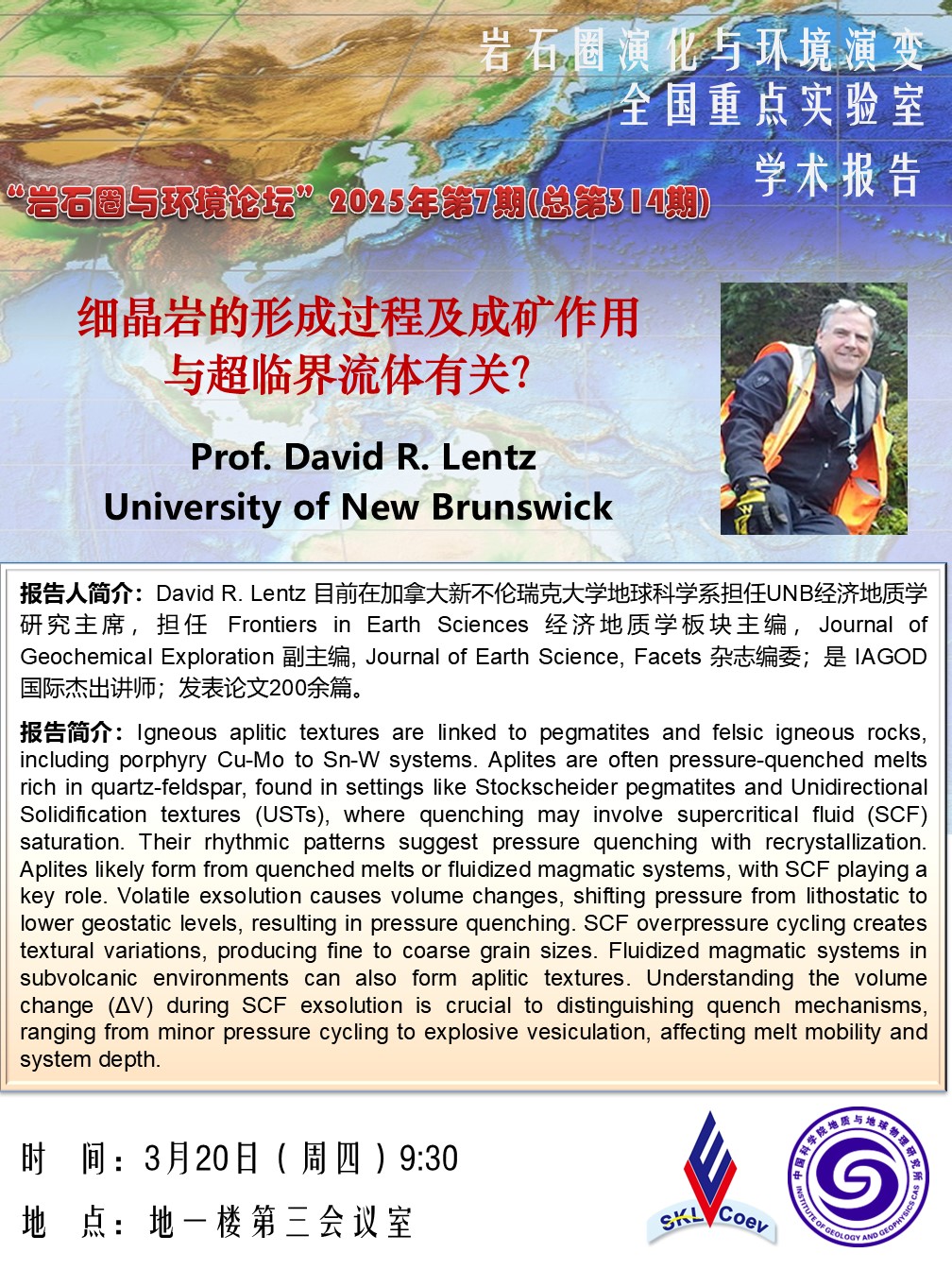【3.20】岩石圈与环境论坛:Prof. David R. Lentz