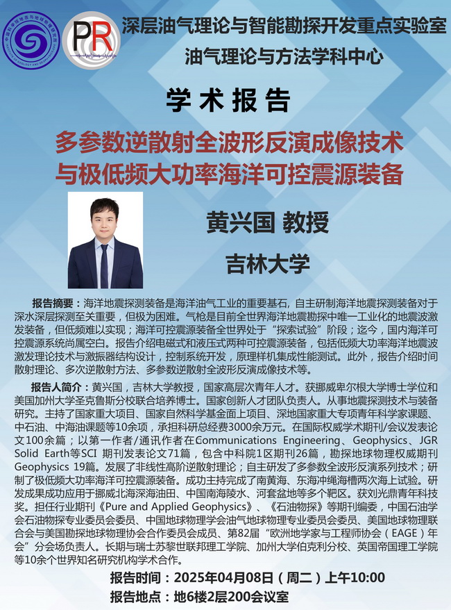 【4.8】油气理论与方法学科中心学术报告:黄兴国 教授
