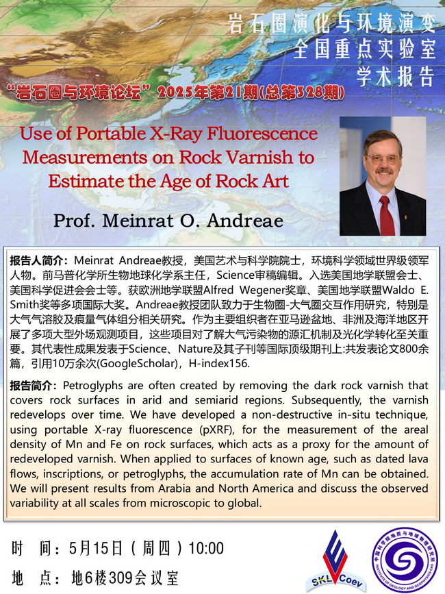 【5.15】岩石圈与环境论坛:Prof. Meinrat O. Andreae