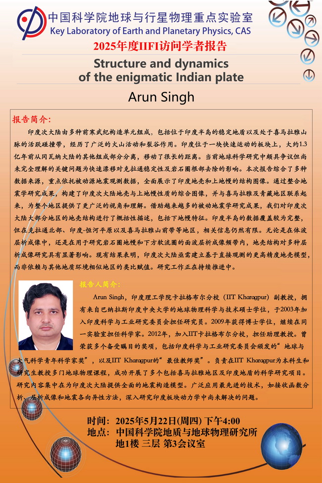 【5.21-5.26】地星室2025年度PIFI、IIFI访问学者报告:Chandrani Singh;Arun Singh