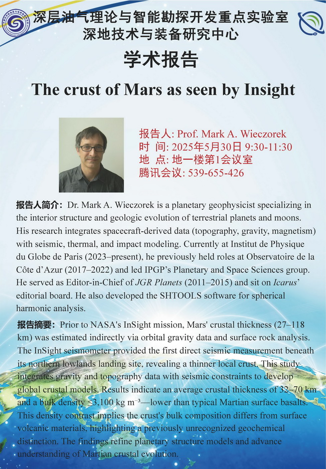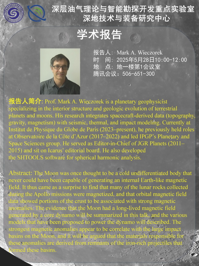 【5.28、30】深地装备研究中心学术报告:Prof. Mark A. Wieczorek