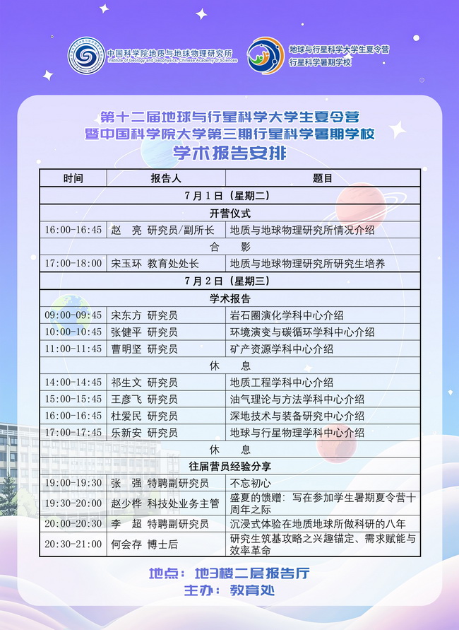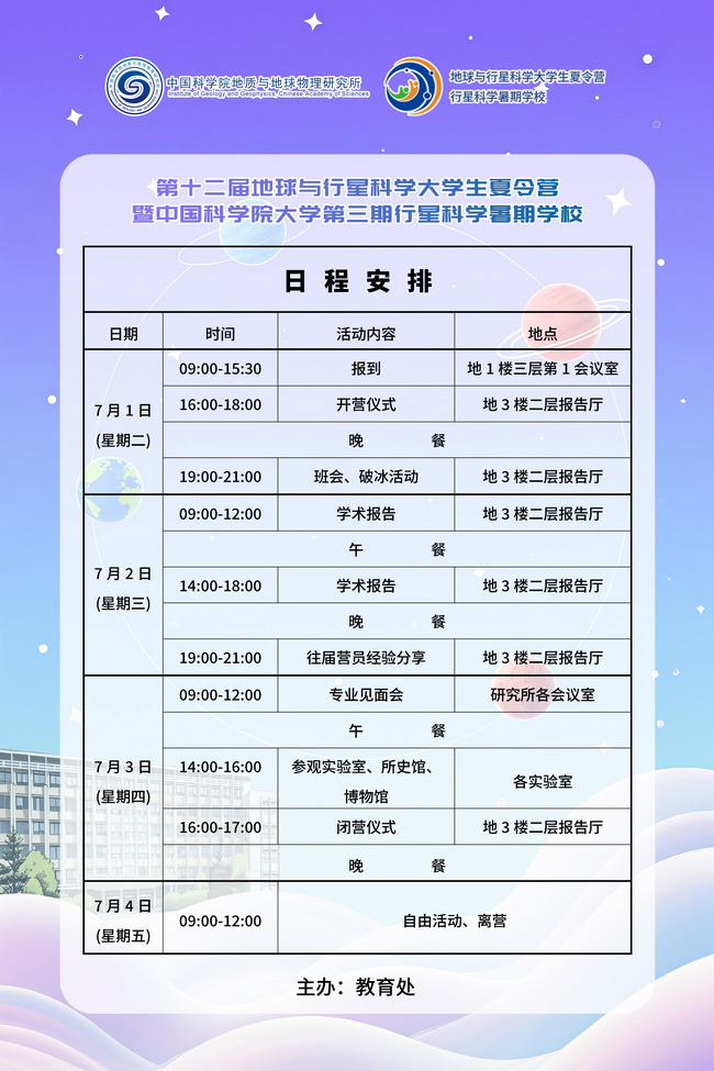 【7.1-7.4】第十二届地球与行星科学大学生夏令营暨中国科学院大学第三期行星科学暑期学校