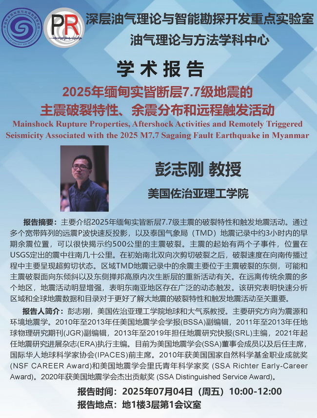 【7.4】油气室学术报告:彭志刚 教授