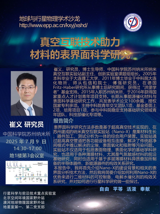 【7.9-10】地星沙龙:崔义 研究员;周友平 副教授