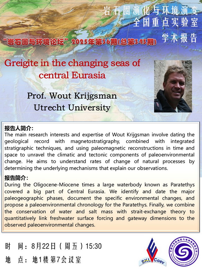 【8.22】岩石圈与环境论坛:Prof. Wout Krijgsman