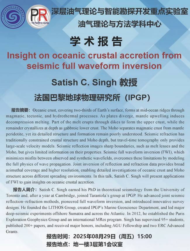 【8.29】油气学科中心学术报告:Satish C. Singh 教授