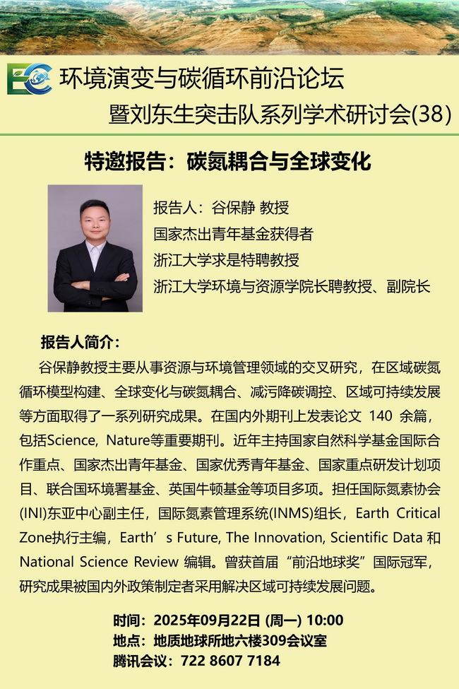 【9.22】环境演变与碳循环前沿论坛暨刘东生突击队系列学术研讨会:谷保静 教授