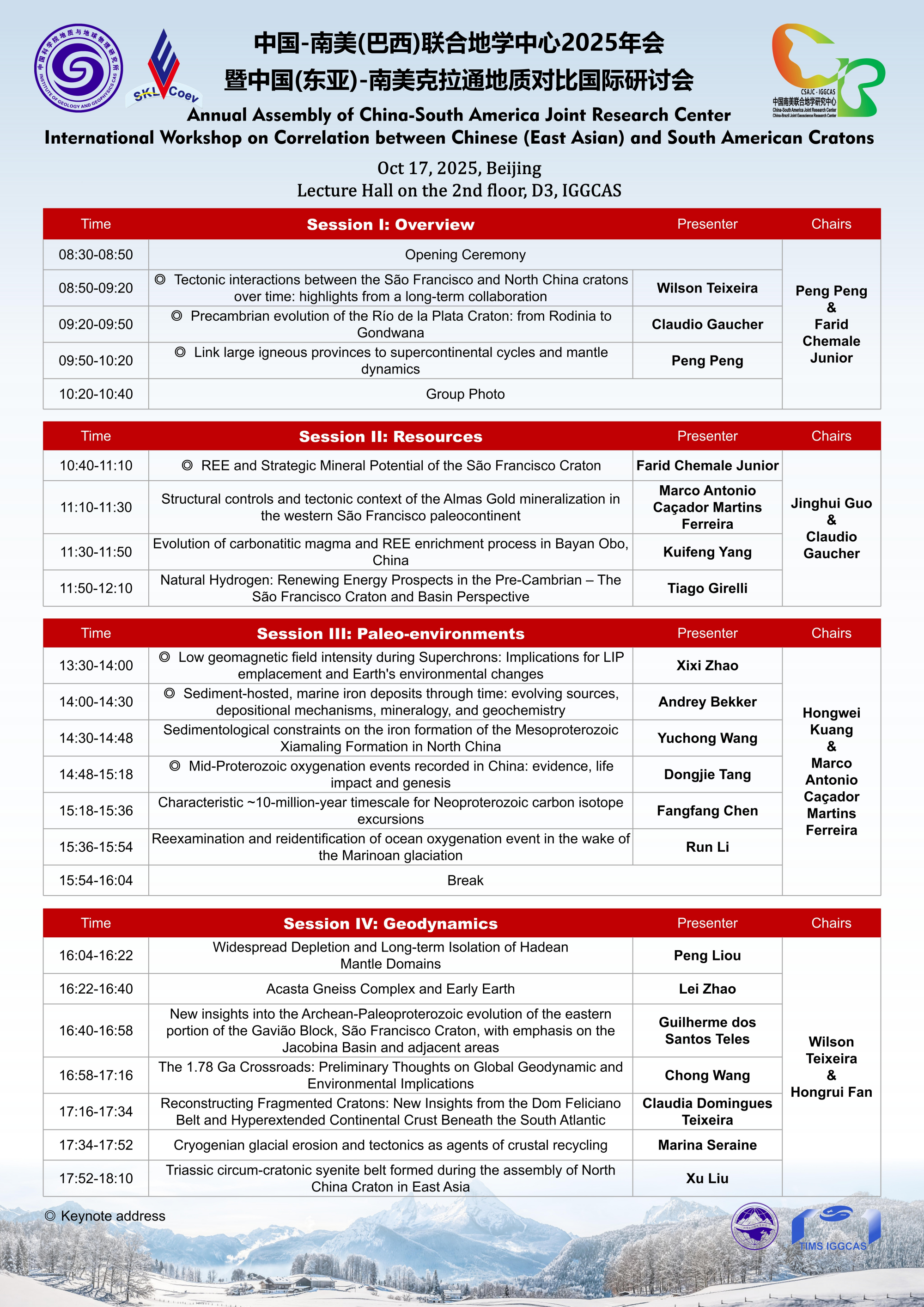 【10.17】International Workshop on Correlation between Chinese (East Asian) and South American Cratons