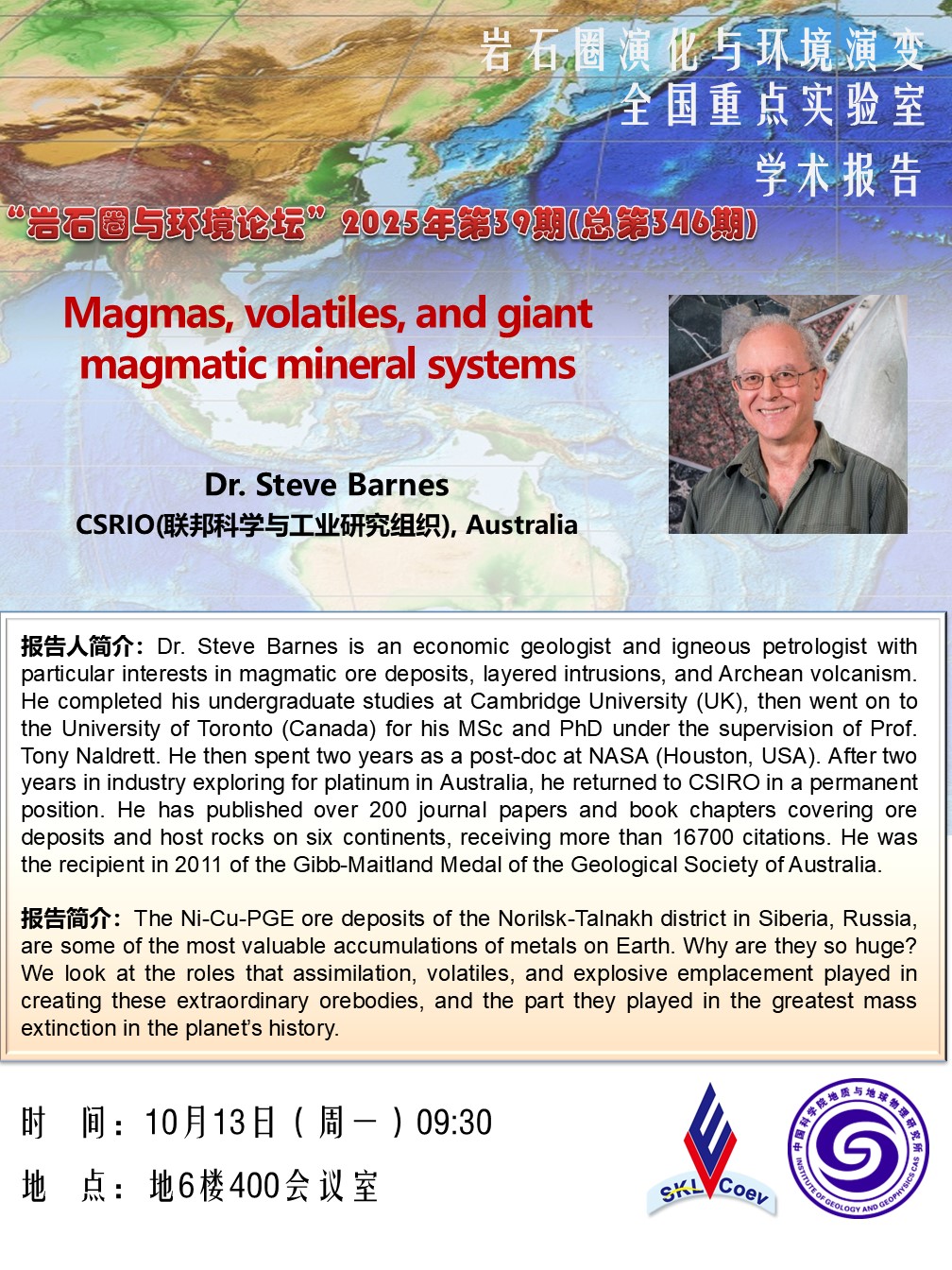 【10.13】岩石圈与环境论坛:Dr. Steve Barnes