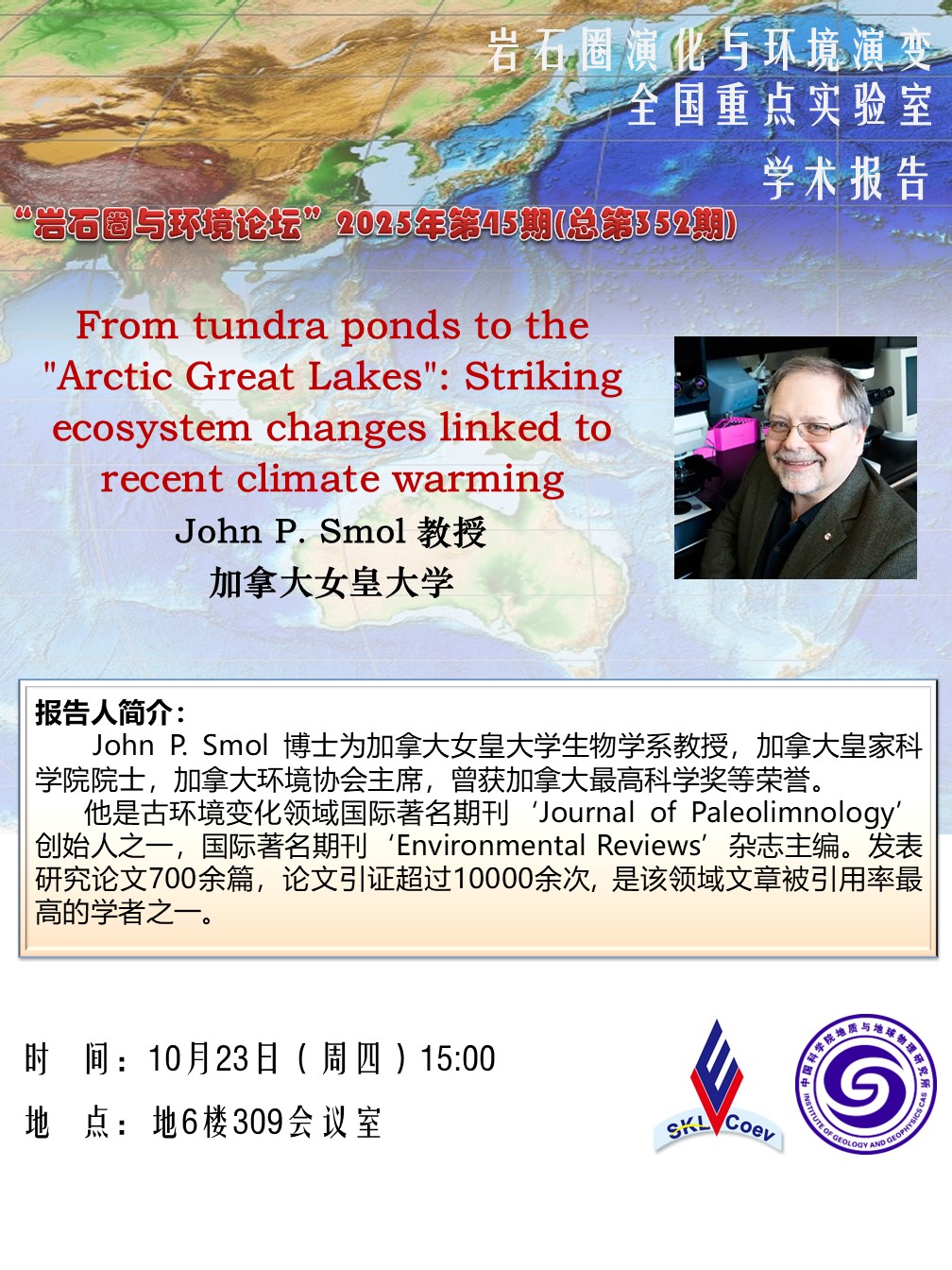 【10.23】岩石圈与环境论坛:John P. Smol 教授