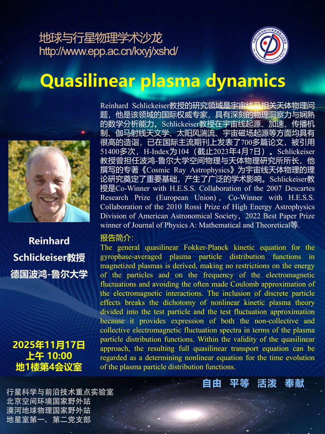 【11.17、21】地星沙龙:Reinhard Schlickeiser 教授