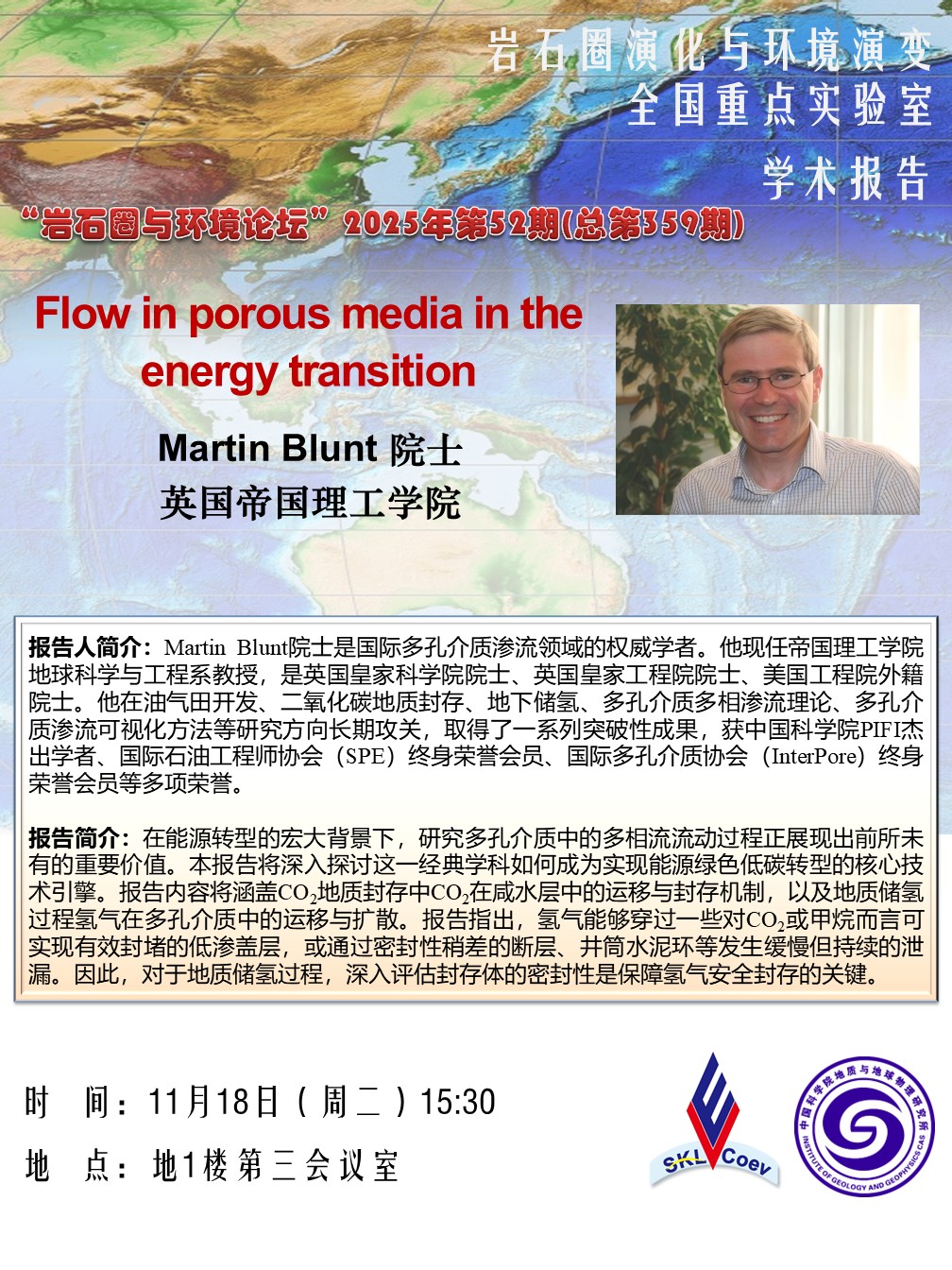 【11.18】岩石圈与环境论坛:Martin Blunt 院士