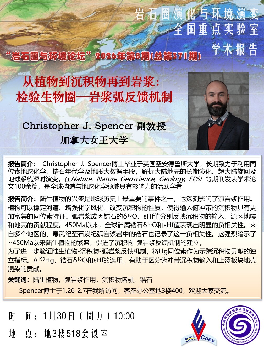 【1.30】岩石圈与环境论坛:Christopher J. Spencer 副教授