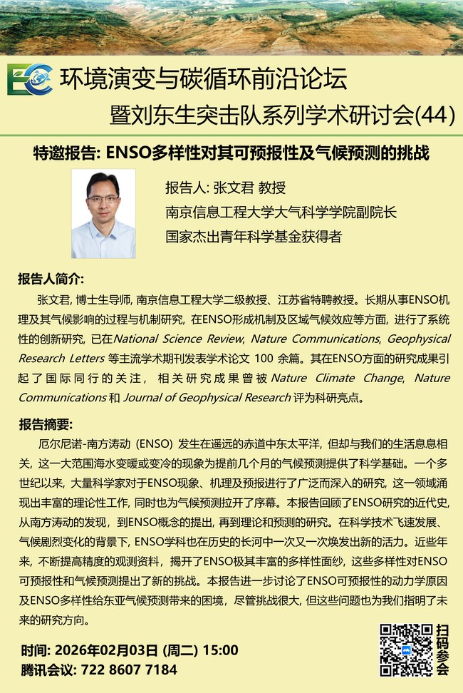 【2.3】环境演变与碳循环前沿论坛暨刘东生突击队系列学术研讨会:张文君 教授