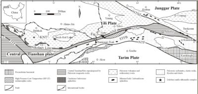 天山造山带在我国境内主要包括两条晚古生代缝合带,即北天山缝合带和南天山缝合带,它们分别由古准噶尔洋与南天山洋闭合形成(最近也有学者提出后者闭合于二叠纪-三叠纪)。在邻国(主要是吉尔吉斯斯坦境内)的北天山和中天山之间,还存在一条东西向延伸的早古生代缝合带,即著名的尼古拉耶夫线(Nikolaev Line),它由Terskey古洋于晚奥陶世早期闭合形成。在境外北天山南缘,与Terskey洋演化有关的蛇绿岩岩片分布在宽约30-80 km,长度大于500km的范围,并且广泛发育早古生代的岛弧岩浆岩。基于区域构造解析,许多学者推断尼古拉耶夫线很可能向东延伸到我国境内,但是由于受后期强烈的岩浆活动及构造运动的改造,我国西天山地区早古生代的地质记录保存甚少,这制约了人们对该地区早古生代地质演化的认识。因此,我国境内Terskey古洋是否存在、尼古拉耶夫线如何延伸,一直缺乏相关的证据。