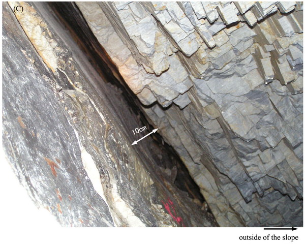 图2 深部拉裂缝控制着潜在边坡滑动面